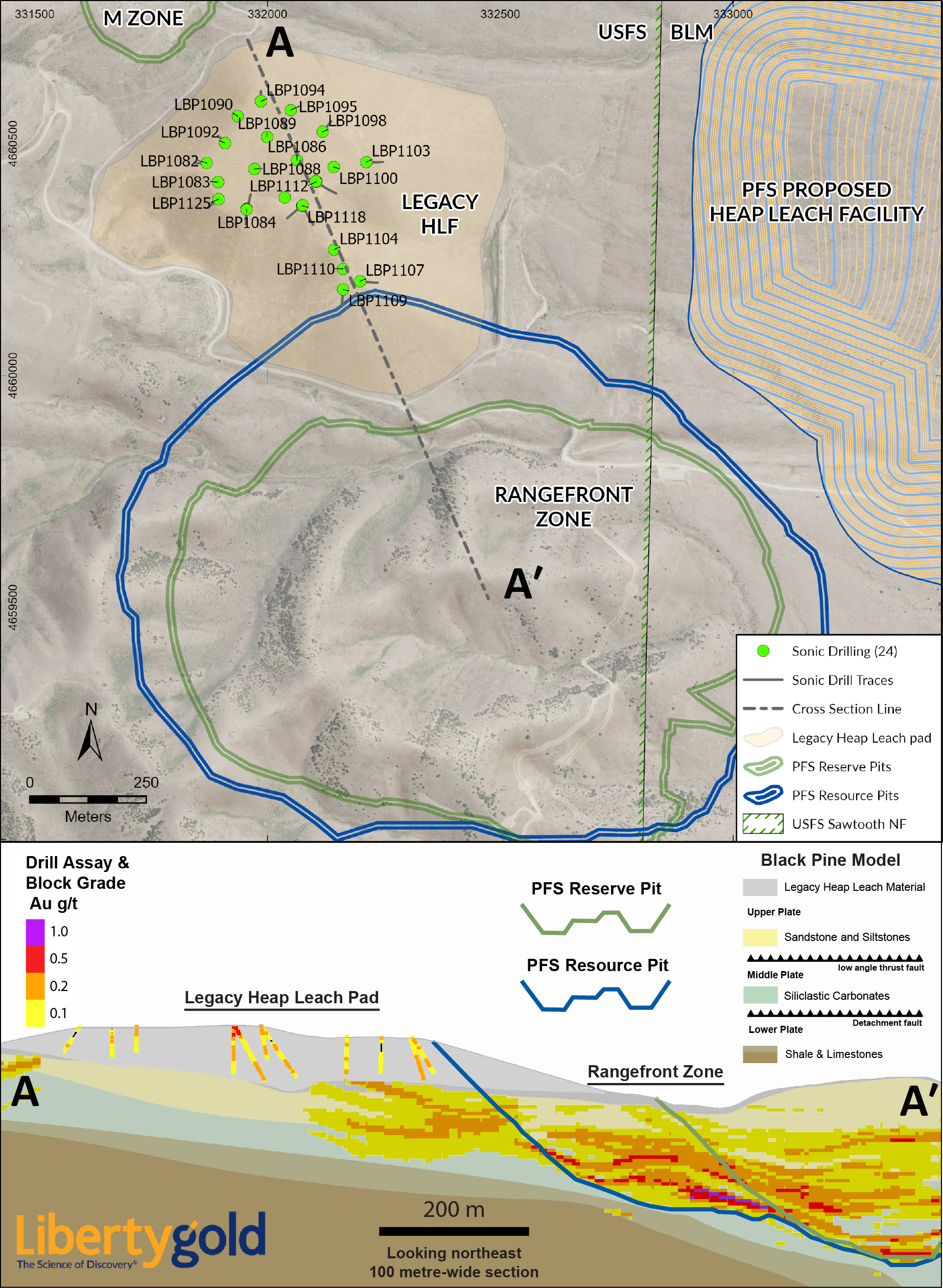 VANCOUVER, B.C. – Liberty Gold Corp. (TSX: LGD; OTCQX: LGDTF) (“Liberty Gold” or the “Company”) is pleased to report the results of the recently completed sonic drilling program on the legacy heap leach pad (“L-HLP”) at its flagship Black Pine Oxide Gold Project (“Black Pine”) in southeastern Idaho.