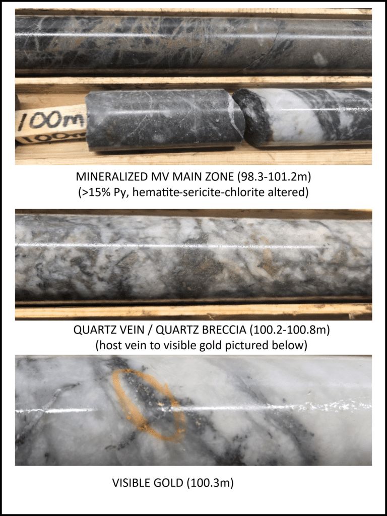 In late January 2026, New Break announced the resumption of Moray drilling, including mobilization by Enviro North Exploration Inc. and site preparation. The Company drilled two holes under its existing exploration permit, for a total of 569 metres in a high priority target area approximately three km to the southeast of the Zavitz zone. On February 17, 2026, following receipt of the new exploration permit, New Break commenced drilling back in the Zavitz discovery zone and has completed the first two drillholes of a planned 2,000 to 2,500 metres in this first phase of 2026 drilling. New Break is pleased to announce that it has encountered visible gold at 100.3 metres in drillhole NBR-26-04 (see Figure 1). While this is the first instance of visible gold in drilling on the Moray property, there is no guarantee that this will have a material positive impact on assay results. Assays are still expected to take a number of weeks, with this phase of drilling expected to last approximately until the end of March.