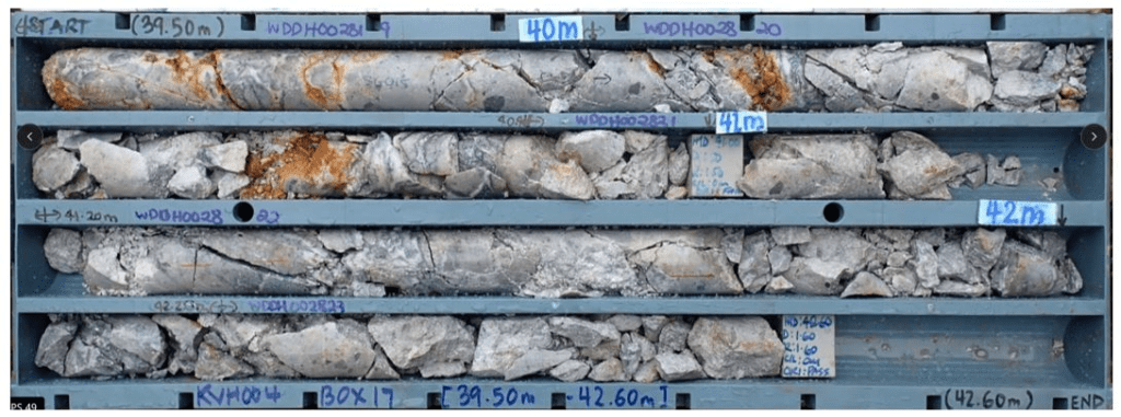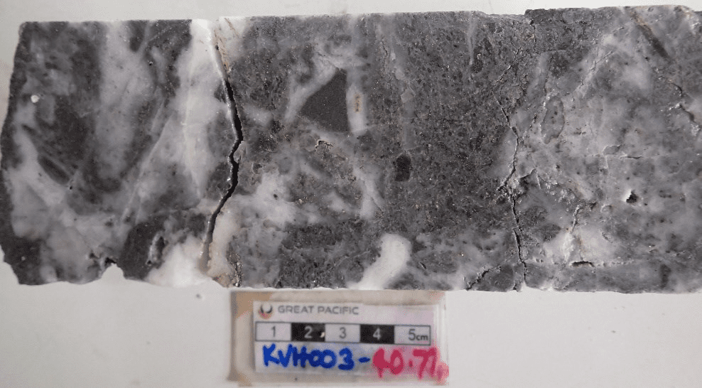 KVH-03 successfully confirmed the updated geological model, intersecting a broad zone of silica flooding, quartz veining and brecciation consistent with the mineralized system observed in KVH-01. The alignment of geological characteristics with those previously reported provides additional confidence in the broader interpretation of the system and supports the view that selected historical drilling may be relevant to the current geological interpretation, subject to ongoing review and validation.