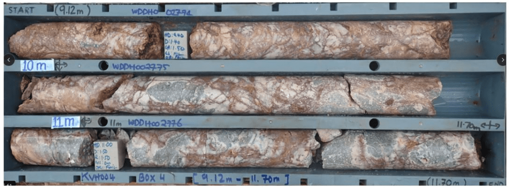 “Importantly, follow-up drilling in KVH-04 has intersected a substantial mineralized zone, comprising multiple quartz veins, brecciation and sulphide mineralization, over approximately 60 metres downhole. While assays are pending, the consistency and scale of mineralization between holes provides additional confidence in the scale and continuity.”